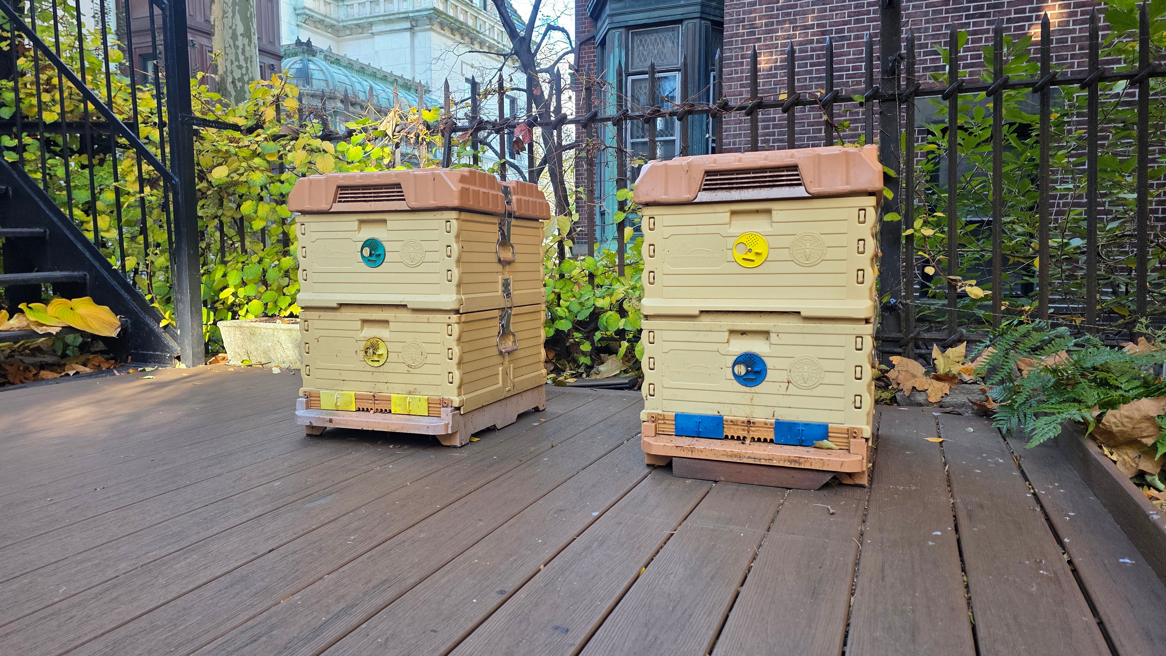Two of our hives in the backyard of the Museum at 319 West 107th street on the Upper West Side